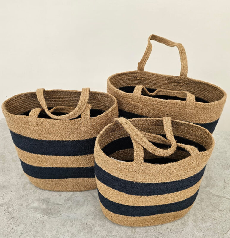 Oval Bag Set – 3 pcs (Blue & Natural)