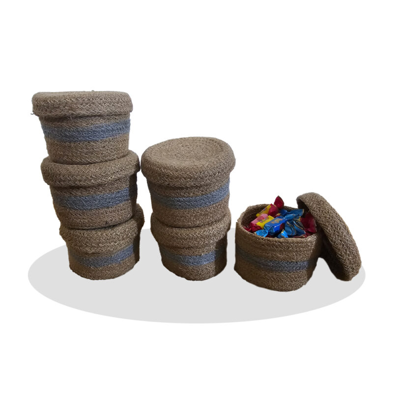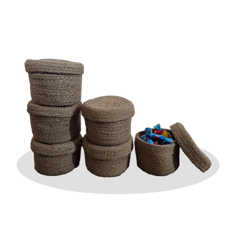 Natural Colour Jute Tiffin Box – 6 Pieces Set (With Lids)