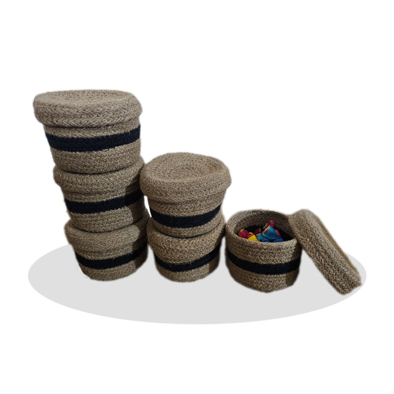 Natural Black Colour Jute Tiffin Box – 6 Pieces Set (With Lids)
