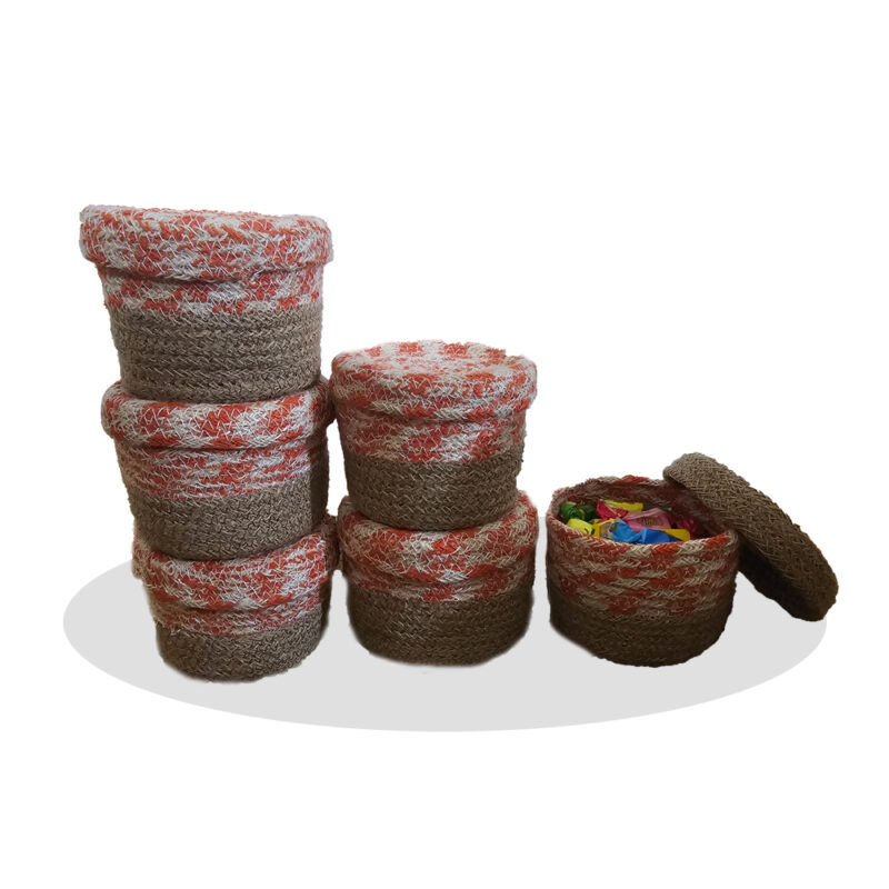 Natural Orange Colour Jute Tiffin Box – 6 Pieces Set (With Lids)